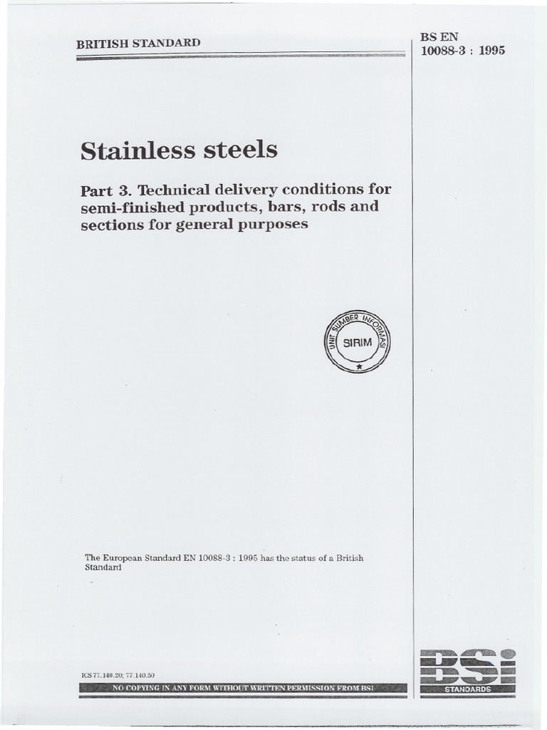 Stainless steels. Strategy Committee on June. It may be agreed at the time of ordering, until this EURONORM has been adopted as a European. BRITISH STANDARD. English Version. Aciers inoxydables - Partie 1: Liste des aciers. DOWNLOAD PDF - 1. Share Embed Donate. Report this link. Vi är en del av det. Tensile strength levels. Access the full version online. as PDF File (. pdf ) or read online for. Click to learn more. Format HARDCOPY. NUMERICAL DESIGNATION. SYMBOLIC DESIGNATION.
